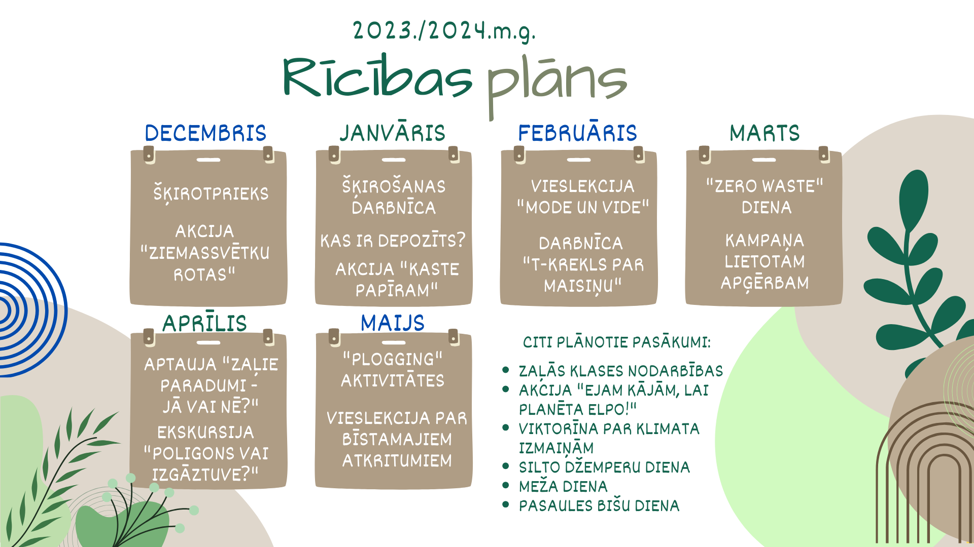 15.novembra pēcpusdienā uz pirmo skolas ekopadomes sanāksmi pulcējās skolēni, skolotāji un vecāki. Sapulcē tika izvirzīta gada tēma un izveidots aktivitāšu, plānoto pasākumu un veicamo darbu saraksts.