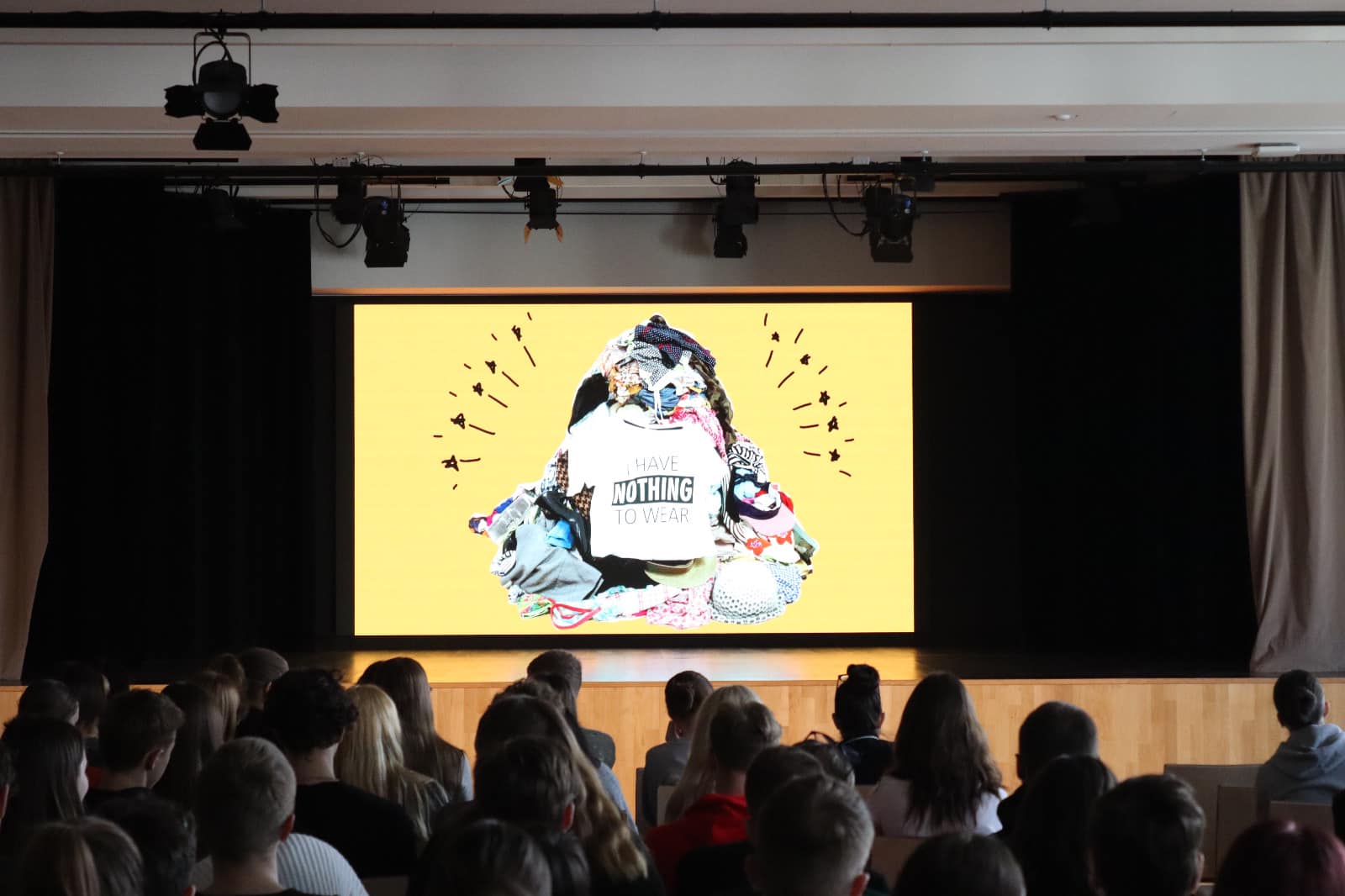 Vieslekcijas laikā vidusskolēni uzzināja, kā apģērbu dizains, piemēram, konkrēta materiāla izmantojums, ietekmē vidi. Tika piedāvātas praktiskas idejas un ierosinājumi, kā modes un apģērbu dizaina kontekstā ikviens no mums var saudzīgāk izturēties pret apkārtējo vidi, veidot garderobi videi draudzīgāku.