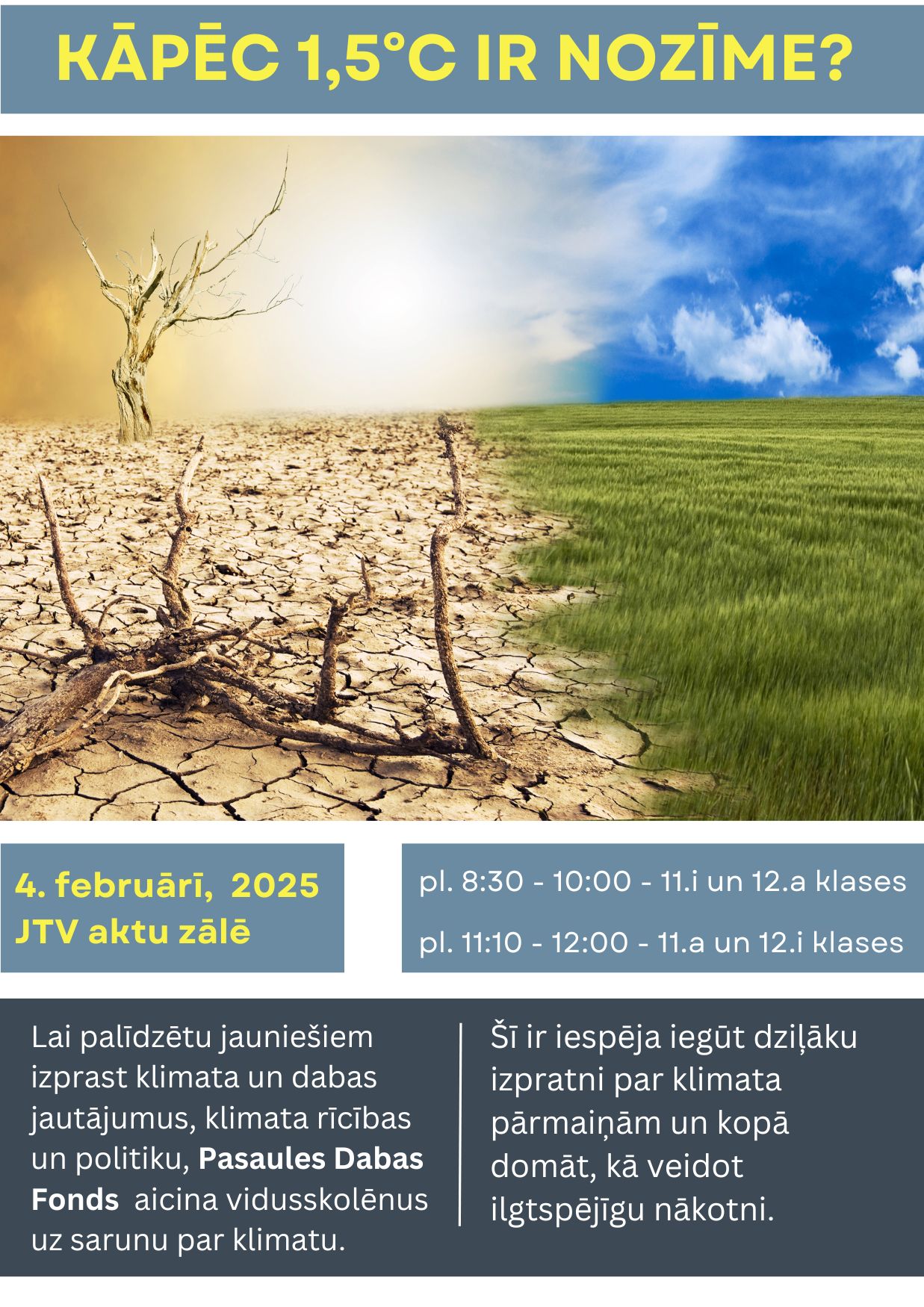 Ar saukli "Mana rīcība klimata labā" tiek atgādināts, ka, darot ikdienā arī mazas lietas vides labā, mēs patiesībā izdarām daudz un parādam savu attieksmi pret vidi, kurā dzīvojam. Enerģijas cenu kāpums, ilgstoši sausuma periodi, plūdi un citi izaicinājumi parāda, ka mums ir jāievieš pārmaiņas ierastajās darbībās un aktīvāk jāsamazina cilvēku dabā atstātās pēdas nospiedums.