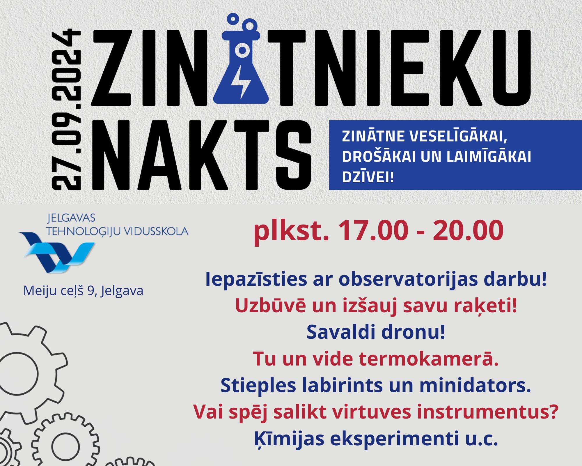 Skolēnu un jauniešus ar ģimenēm gaidīs arī zinātnes šovs, STEM darbnīcas, diskotēka uz skrituļslidām, kā arī daudzas citas aizraujošas aktivitātes.