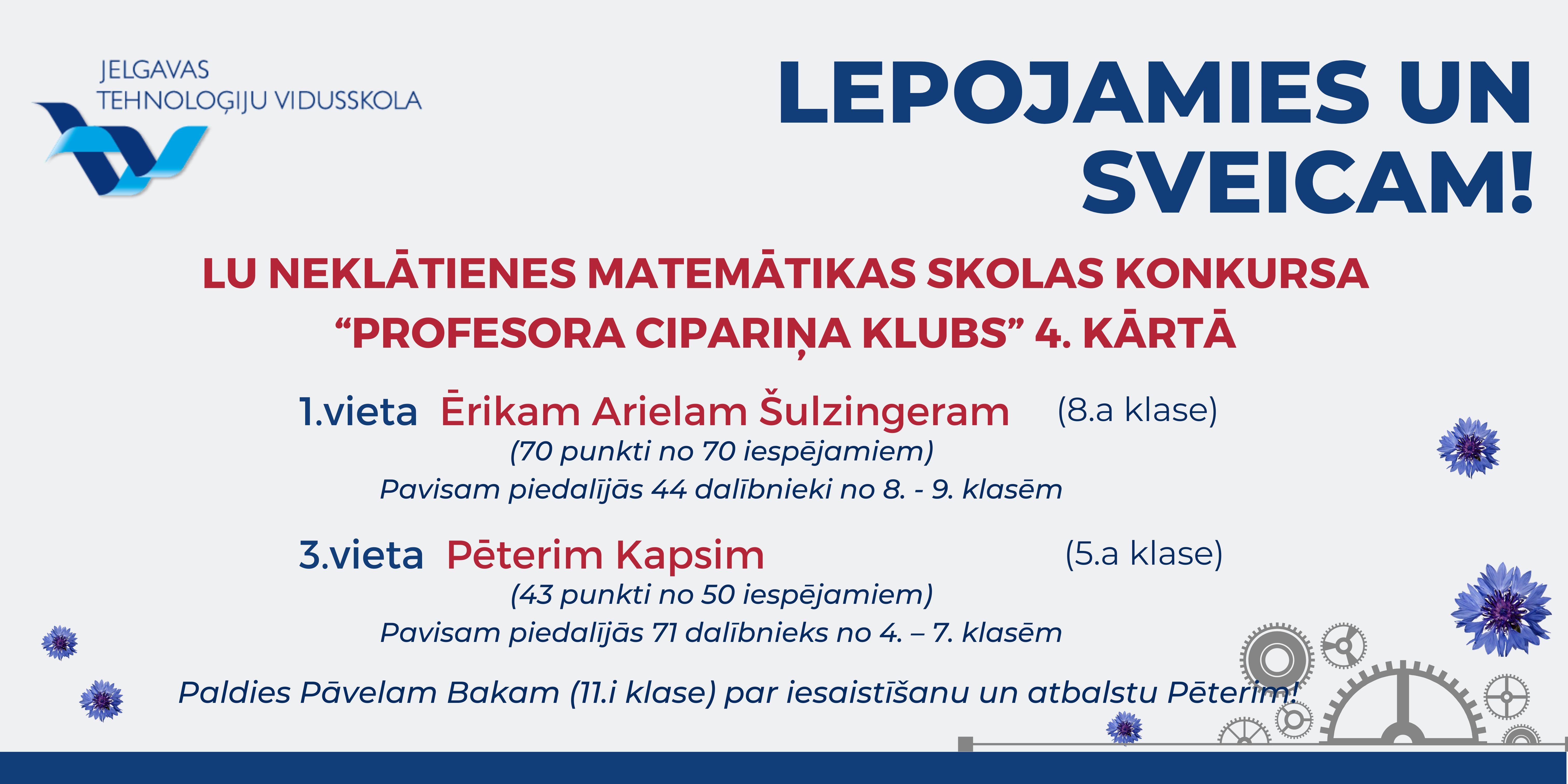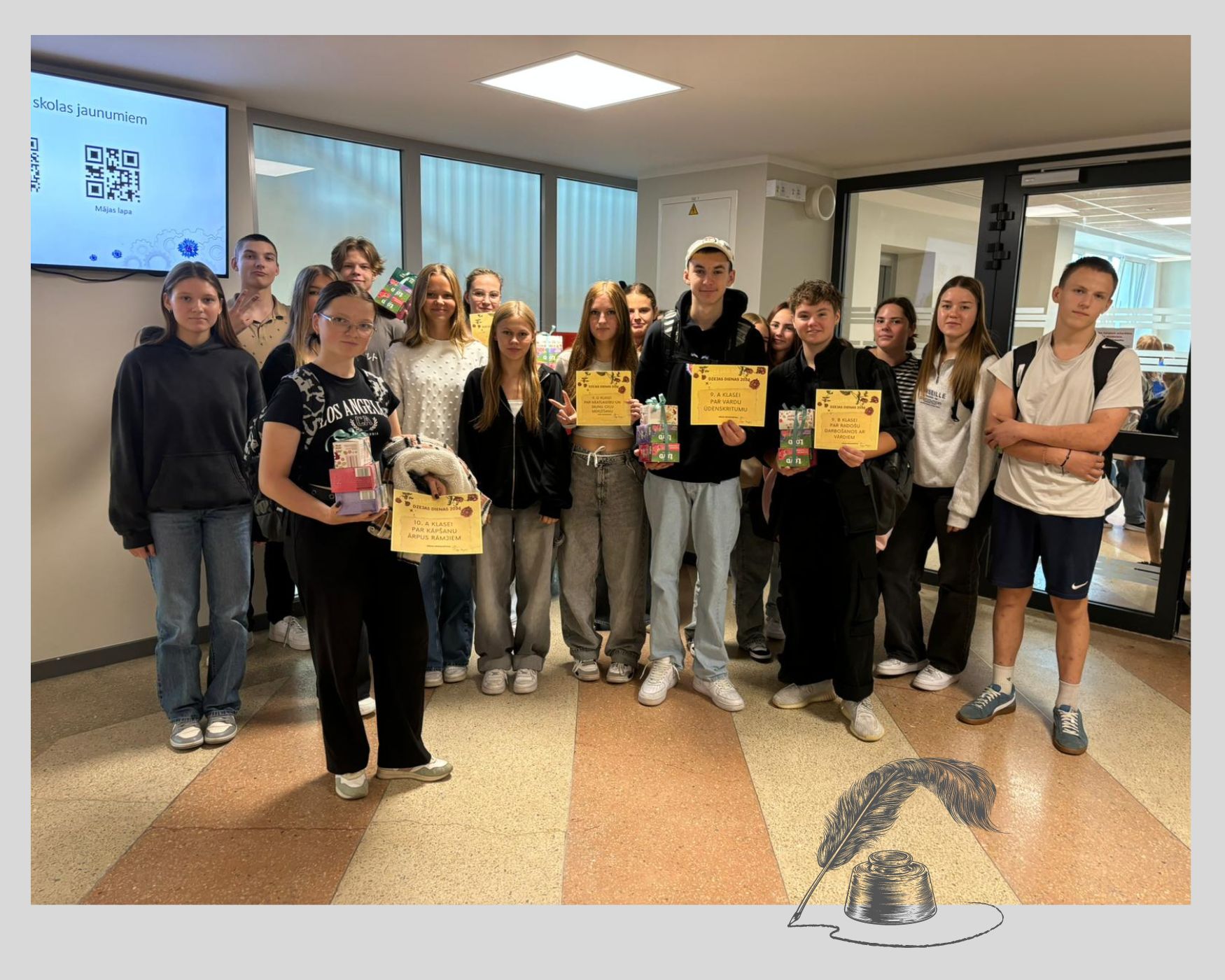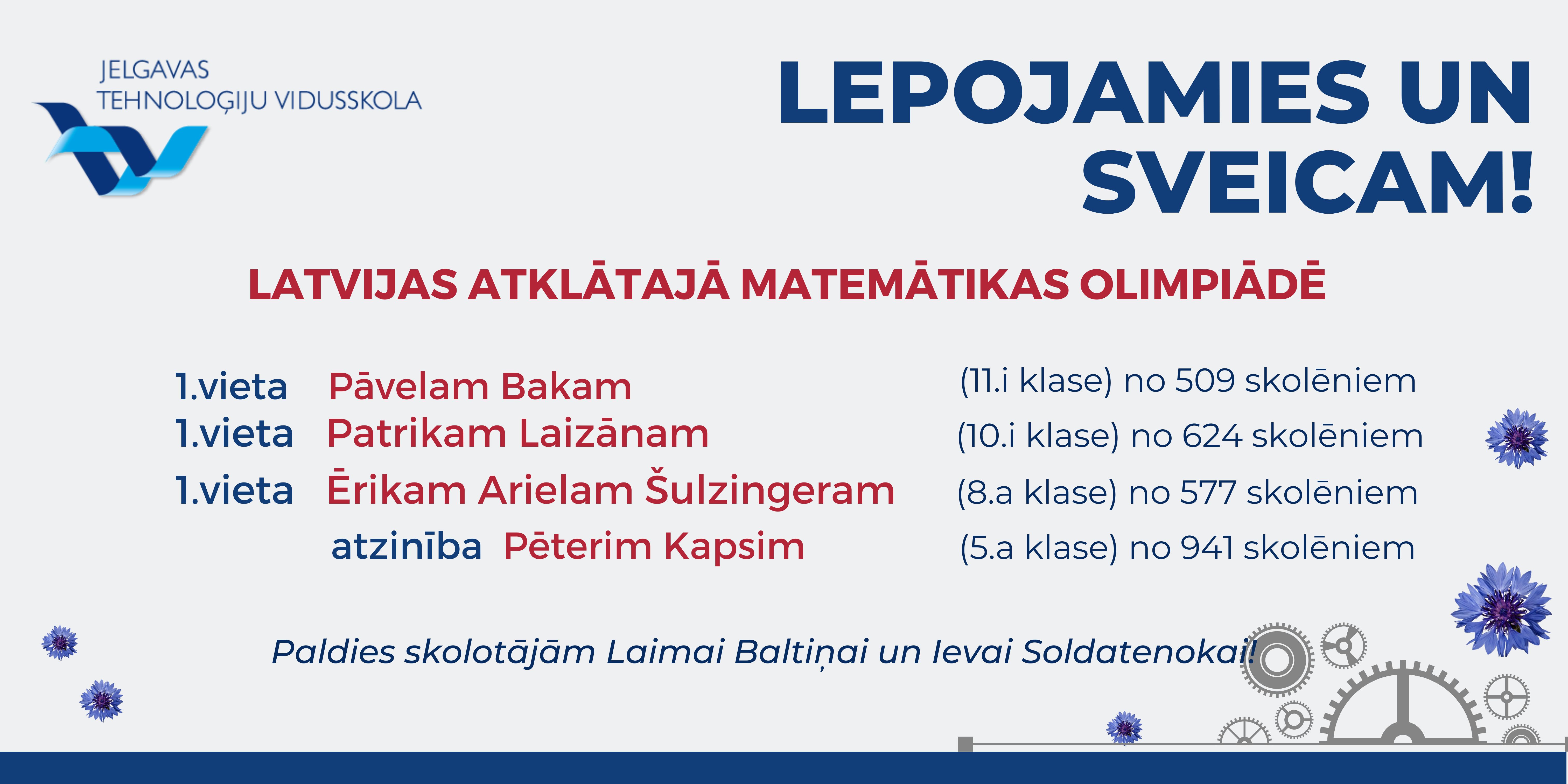 Paldies Matīm Vītolam, komandai "Cietie rieksti" (Pāvels Baks, Patriks Laizāns, Ēriks Ariels Šulzingers), 9.b, 6.a, 5.b un 7.b klasei par aizrautīgo piedalīšanos, un paldies skolotājiem par skolēnu sagatavošanu un iedvesmošanu!