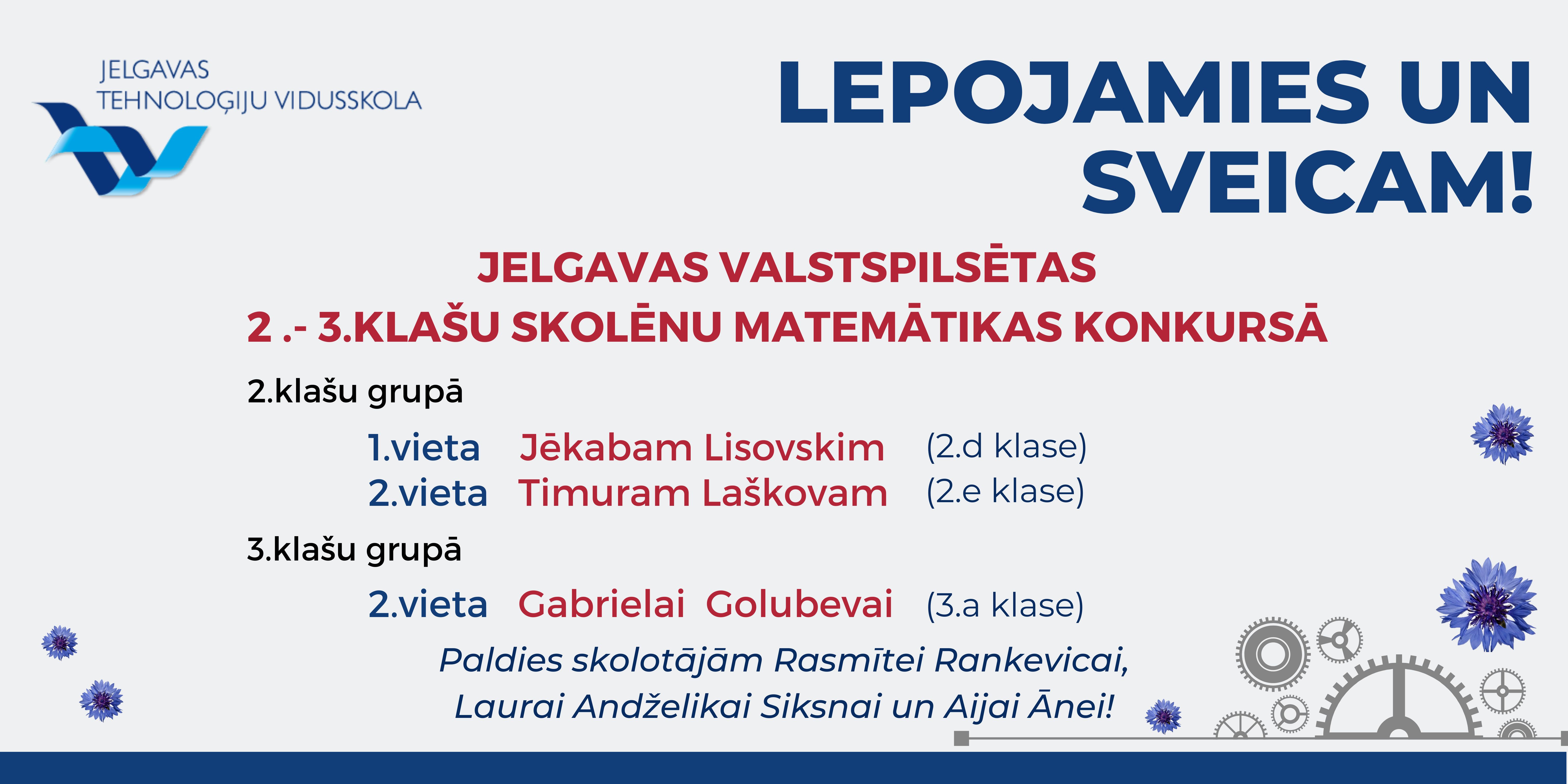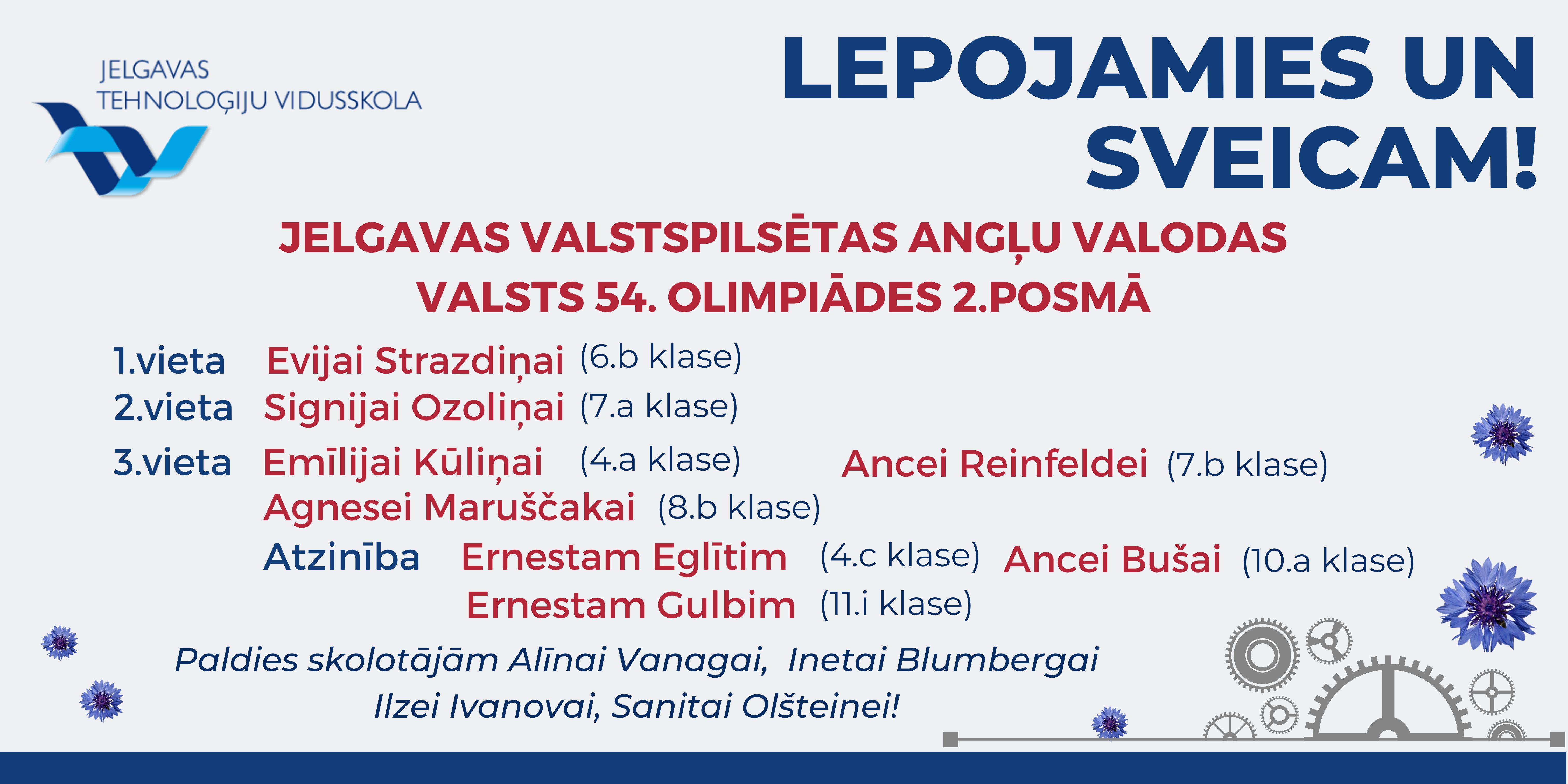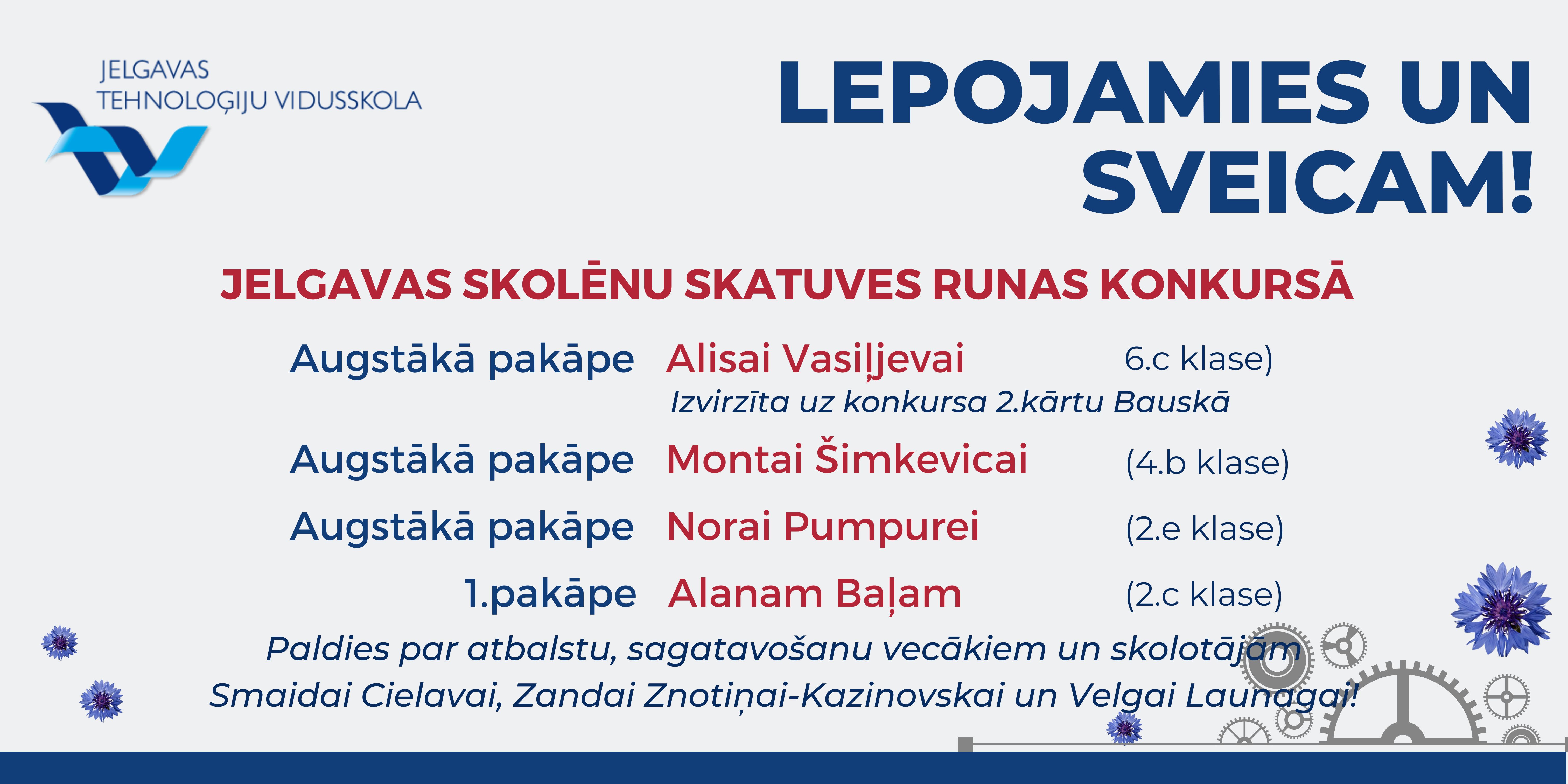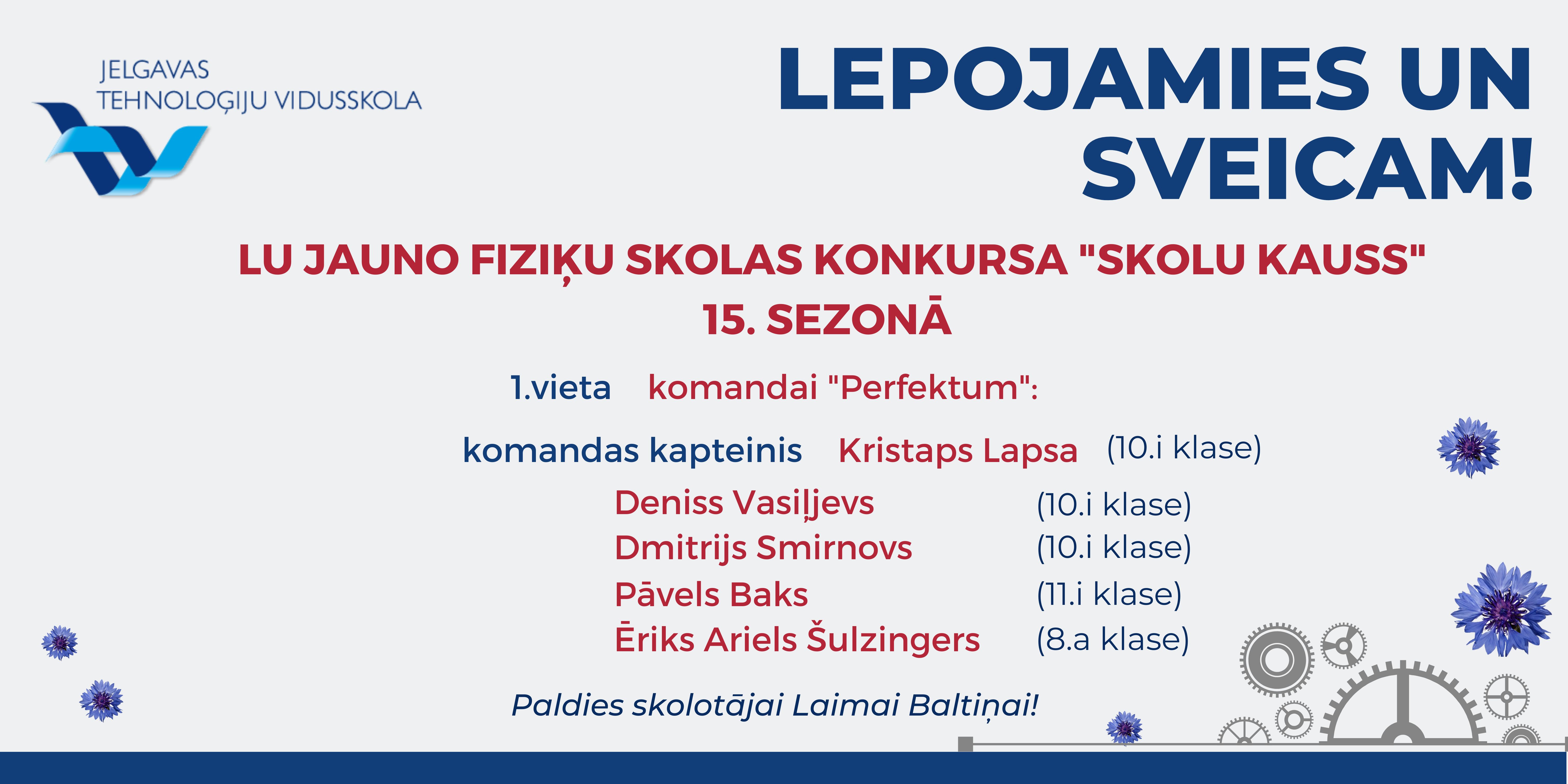 Paldies Matīm Vītolam, komandai "Cietie rieksti" (Pāvels Baks, Patriks Laizāns, Ēriks Ariels Šulzingers), 9.b, 6.a, 5.b un 7.b klasei par aizrautīgo piedalīšanos, un paldies skolotājiem par skolēnu sagatavošanu un iedvesmošanu!