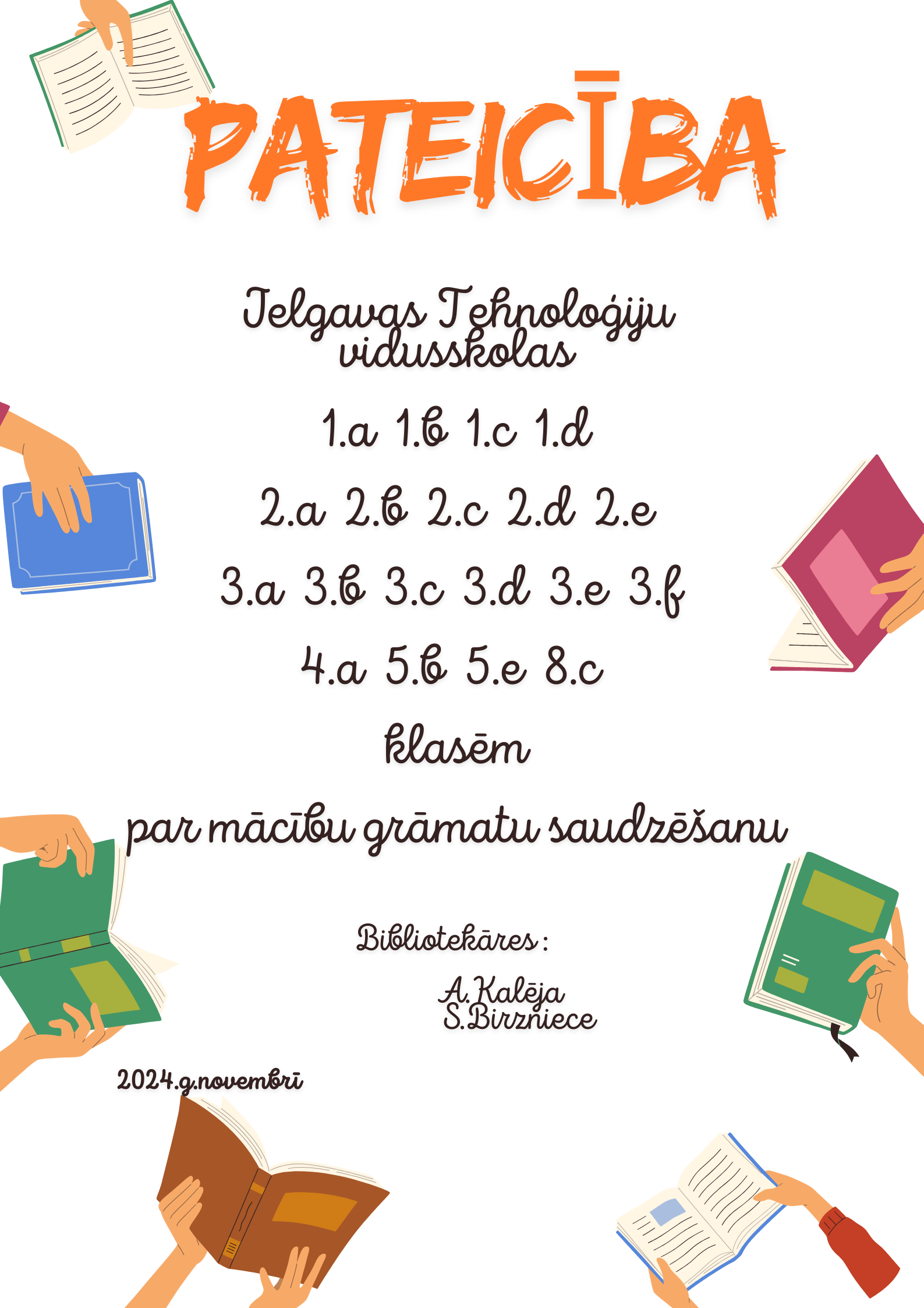 Paldies 8.b klases skolniecei Melānijai Ničiporai un 9.b klases skolniecēm Diānai Druzjakai un Milanai Čibisovai par sniegto atbalstu pasākuma laikā, video un foto atskata sagatavošanu.
