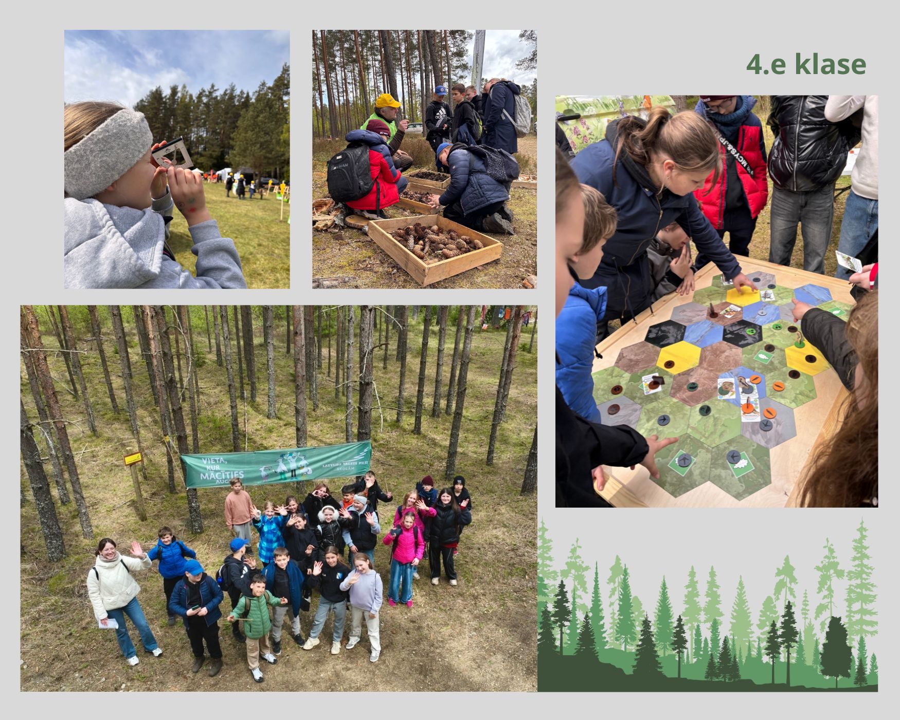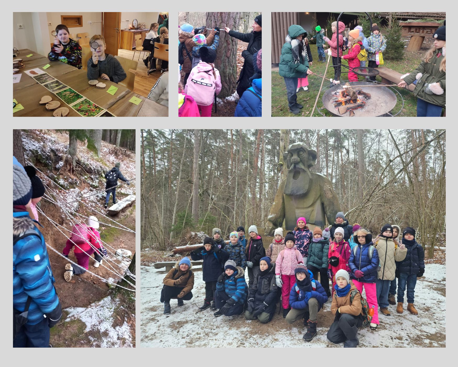 Foto orientēšanās laikā Kausu takā tika meklēti 23 objekti, darbojāmies grupās, veicās ļoti dažādi. Apskatījām Minhauzena kuģi, uz kura izskrējāmies, izšūpojāmies. Ejot pa 4,3 km garo Meža taku, nonācām pie jūras, spēlējām spēles, draudzīgi pavadījām laiku, jo diena bija saulaina un silta. Jautrība valdīja arī cepot desiņas piknikā.