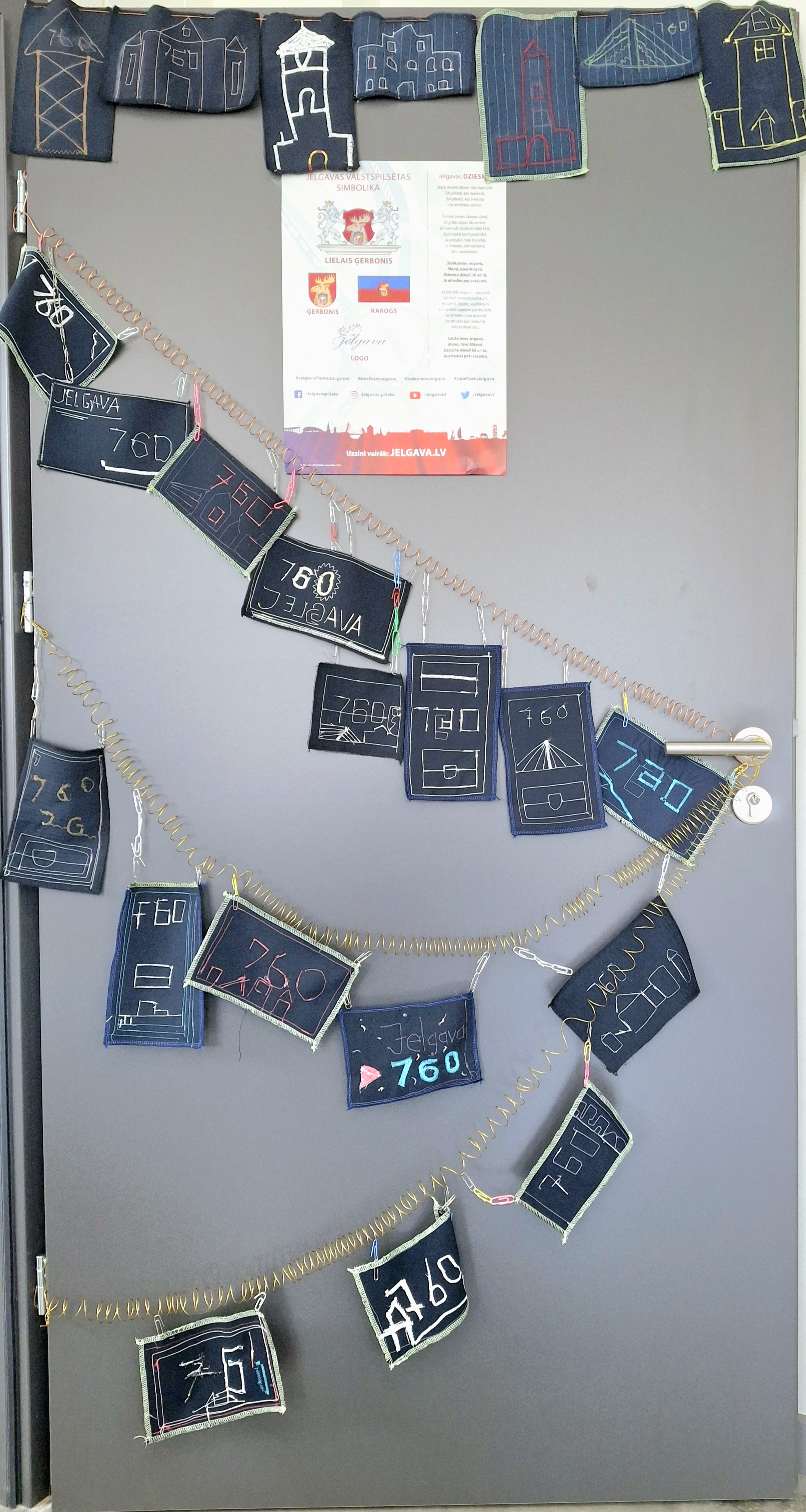 Gatavojoties svētku gājienam, izmantojām apgūtās zināšanas ģeometrijā un konstruēšanā, lai izveidotu savu Jelgavas karodziņu.