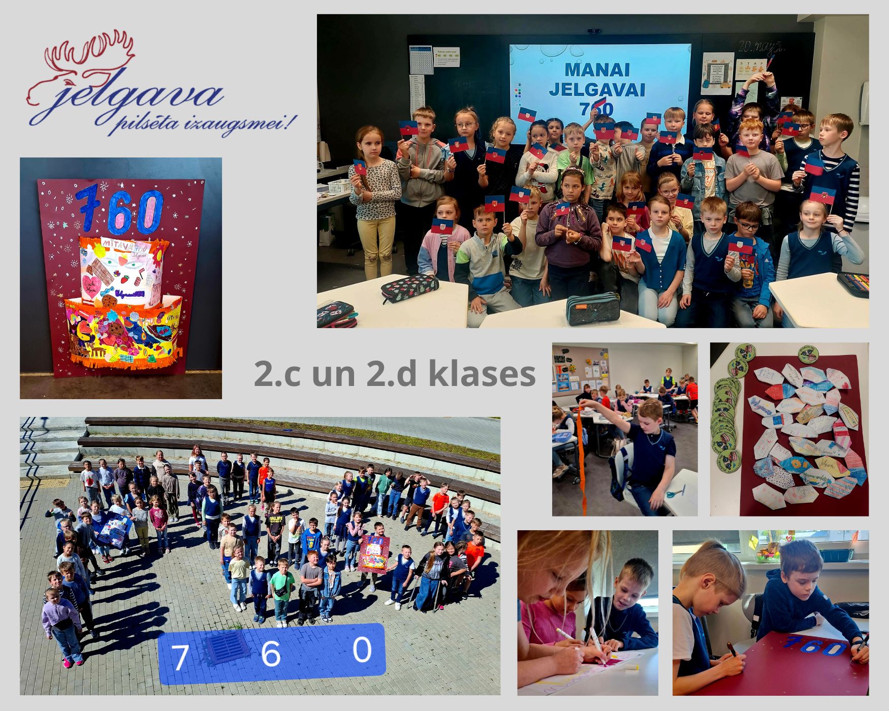 Kas gan ir dzimšanas diena bez kūkas? Uzdevumu dekorēt pilsētas torti, skolēni saņēma, ja bija atrisinājuši matemātisko darbību slepenu kodu. Kad kods atšifrēts, tad var ķerties pie tortes dekorēšanas. Kopā izdevās tik košas un lielas svētku kūkas! Kaut tās būtu īstas! Abas klases satikās skolas amfiteātrī, lai apbrīnotu viens otra veikumu un, lai izveidotu skaitli 760, jo tieši tik gadus svin mūsu pilsēta.