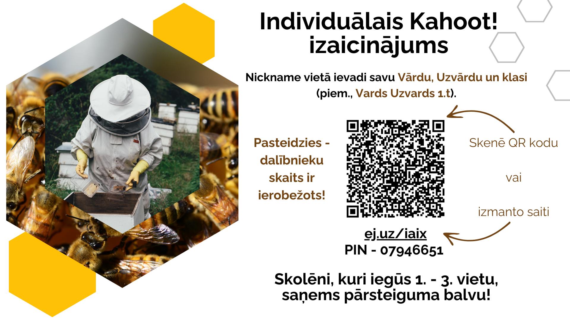 Paldies skolotājam Ivaram Bahmanim, biškopim Naurim Bērziņam, Latvijas Biškopības biedrībai par atbalstu pasākuma īstenošanā.