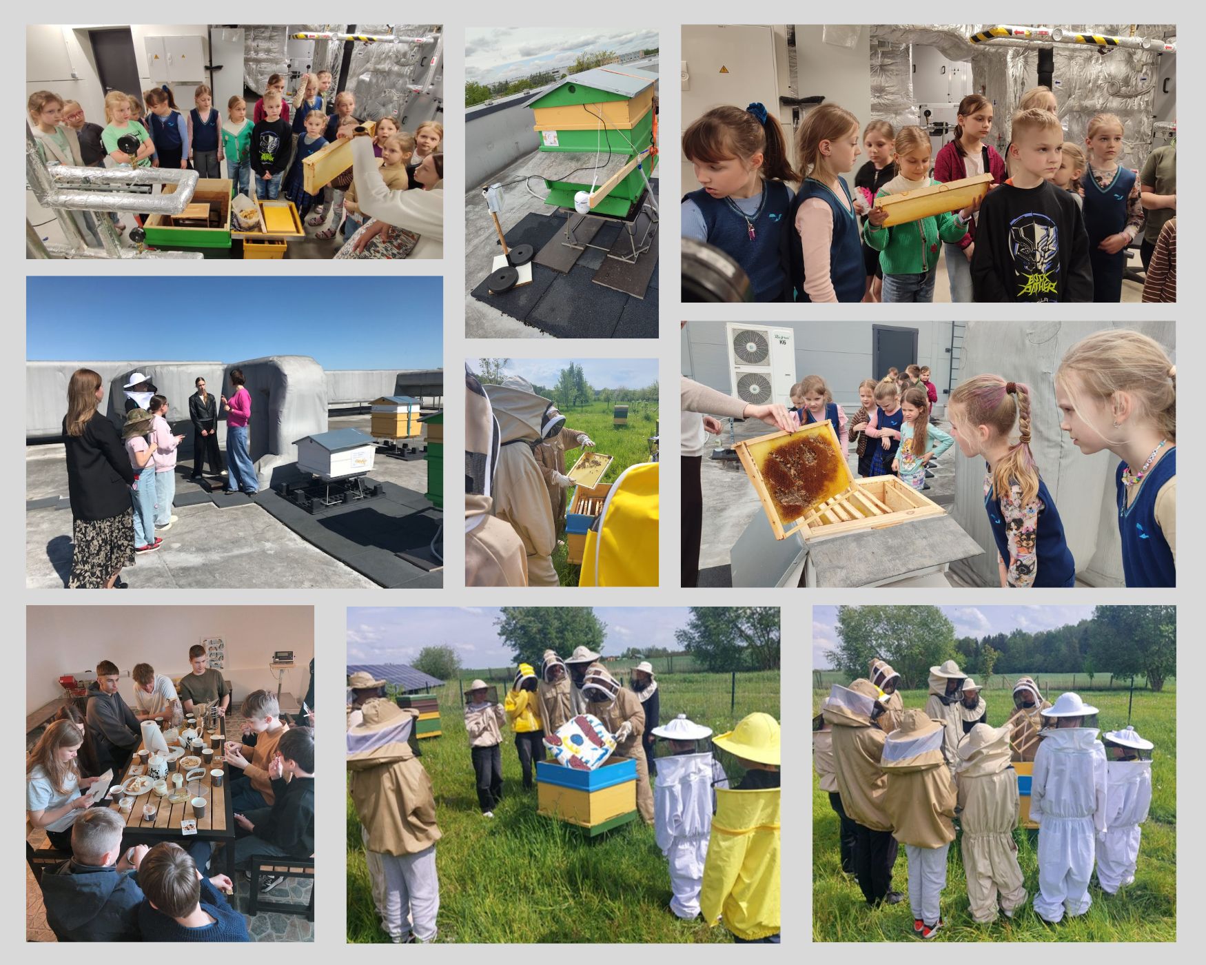 Lai veicinātu izpratni par bišu nozīmi ekosistēmā, Ekopadomes skolēni piedalījās vairākās nodarbībās. 21.maijā un 23.maijā par mūsu skolas bitēm stāstīja Nataļja Buļipopa. Jaunāko klašu skolēni ar lielu nepacietību gaidīja brīdi, kad varēs uzkāpt uz skolas jumta, lai apskatītu tur novietotos bišu stropus.