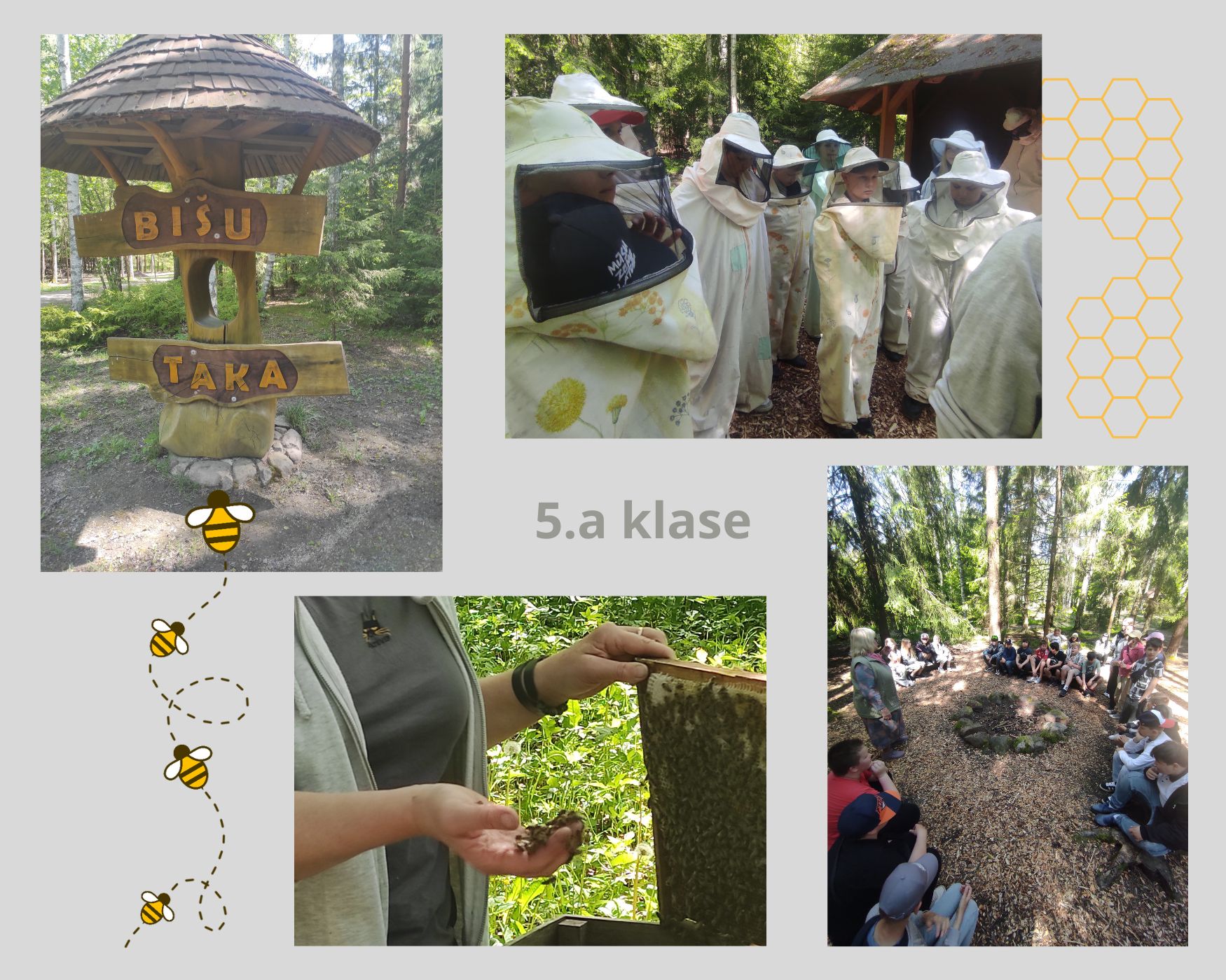 27.maijā 5.a klase devās mācību ekskursijā uz dabas parku "Laumas" Talsu novadā, kur skolēniem bija iespēja uzzināt vairāk par bišu saimes dzīvi.