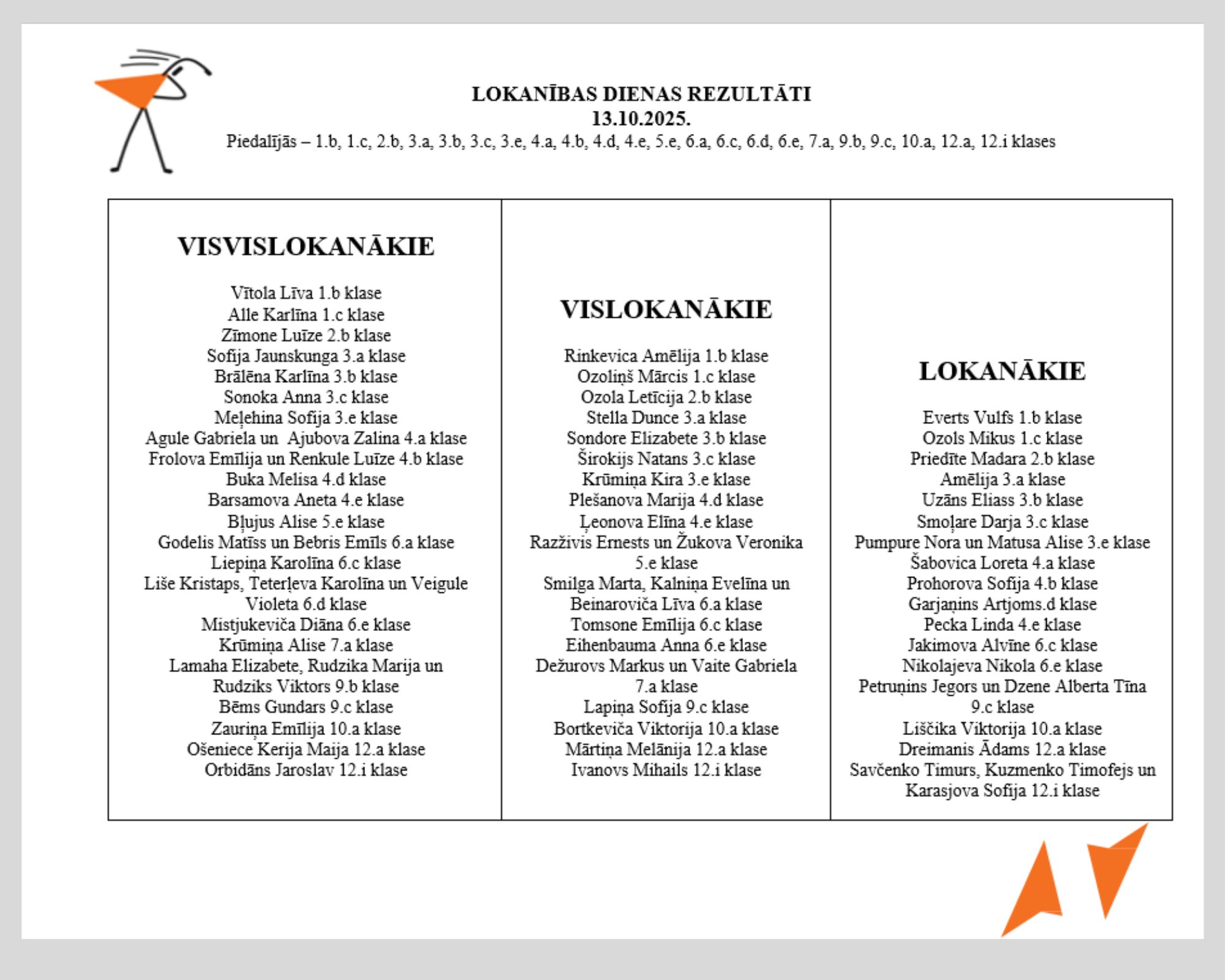 Latvijas komandas atlases sacensības notiks 20. un 21. septembrī. Uz atlases sacensībām aicina iepriekšējā mācību gada (2024./2025.) valsts olimpiāžu uzvarētājus. Ņemot vērā augstos sasniegumus matemātikā, no mūsu skolas uz atlases sacensībām uzaicināti Ēriks Ariels Šulzingers (9.a klase), Patriks Laizāns (11.i klase) un Pāvels Baks (12.i klase).