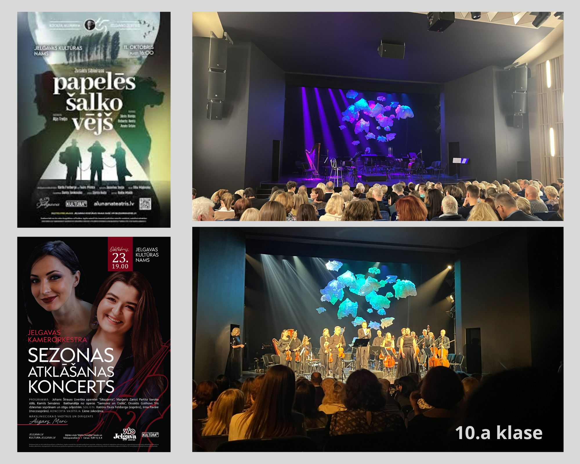 11.oktobrī 10.a klases jaunieši apmeklēja Ā.Alunāna Jelgavas teātra pirmizrādi "Papelēs šalko vējš" (Žeralds Sibleirass) un 23.oktobrī - Jelgavas Kamerorķestra sezonas atklāšanas koncertu.