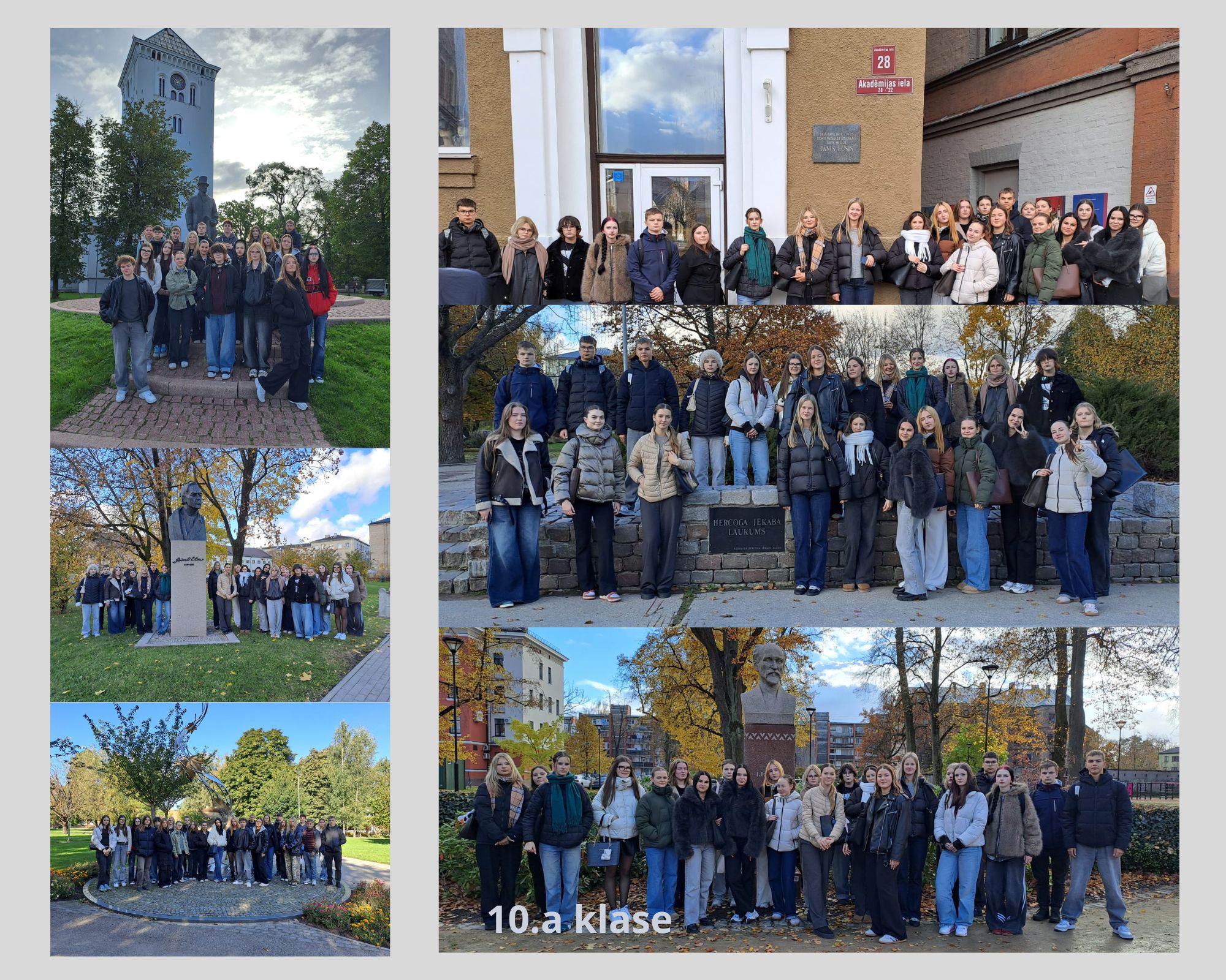 Septembrī un oktobrī 10.a klases skolēni izstāigāja daļu no Jelgavas pilsētas izstrādātā pastaigu maršruta "Jelgava - skulptūru pilsēta. Jelgavas personības".