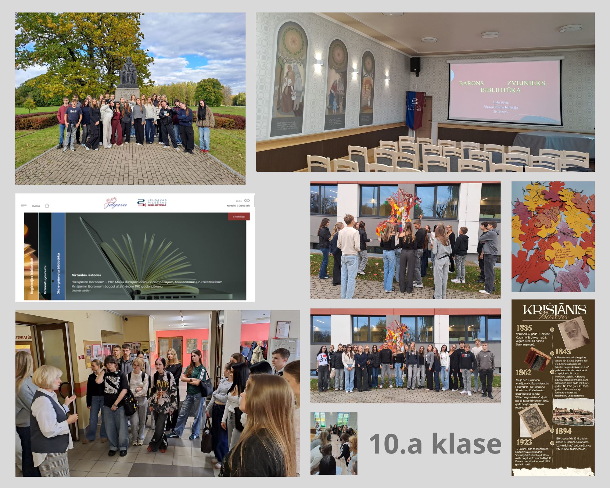 Klases stundā izpētījām Jelgavas pilsētas bibliotēkas veidotu virtuālo izstādi "Krišjānim Baronam – 190" un apmeklējām nodarbību pilsētas bibliotēkā "BARONS. Zvejnieks. Bibliotēka". Mums pastāstīja par Kr.Barona nozīmi Latvijas kultūrā, par Dainu tēva saistību ar Jelgavu, kā arī par interesantiem faktiem saistībā ar zāles tapšanas gaitu un mākslinieku A.Zvejnieku.