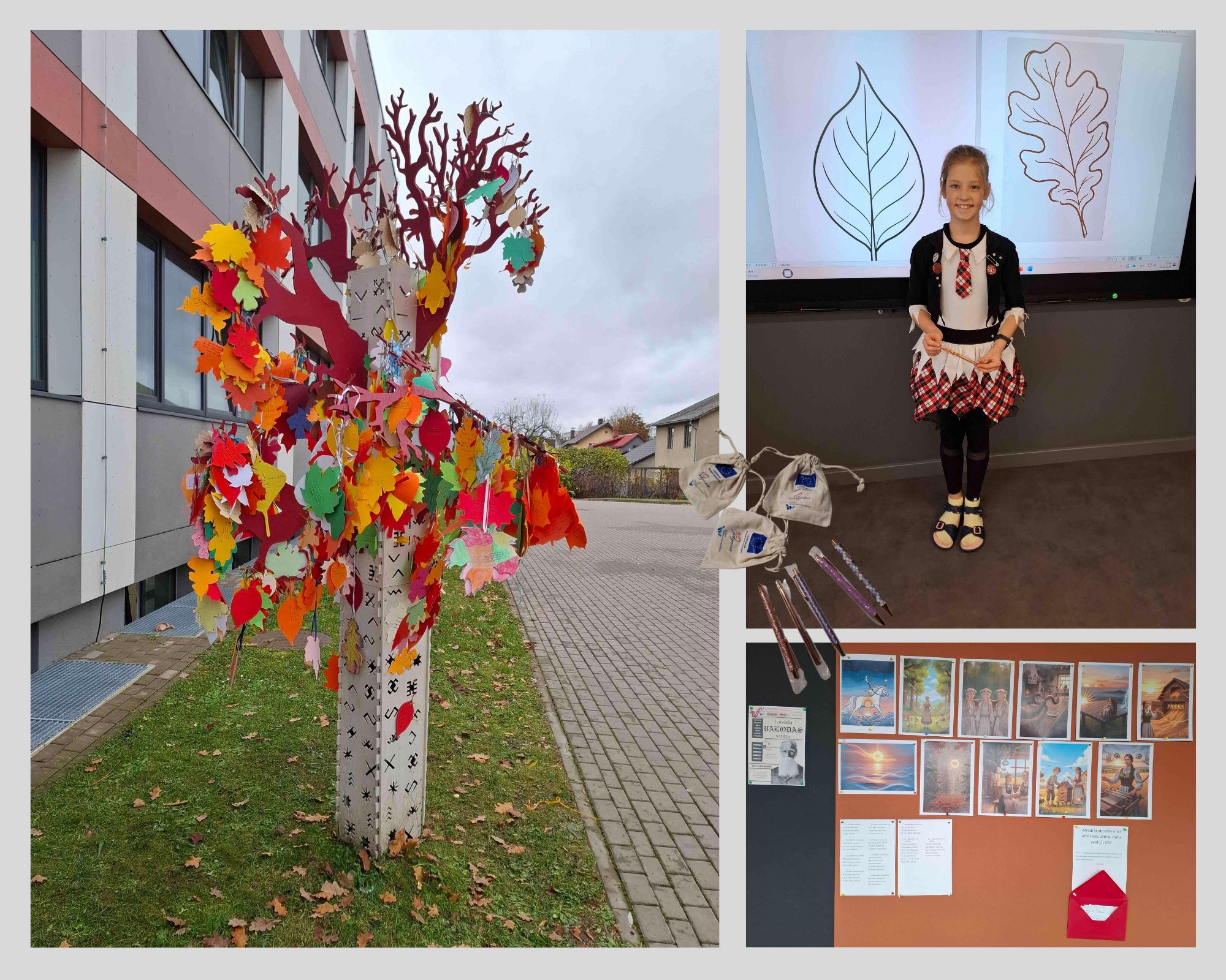 Rakstījām tautasdziesmas uz krāsainām koka lapām un piektdien, 31. oktobrī, Kr. Barona 190.dzimšanas dienā tās izvietojām stilizētajā kokā pie skolas.