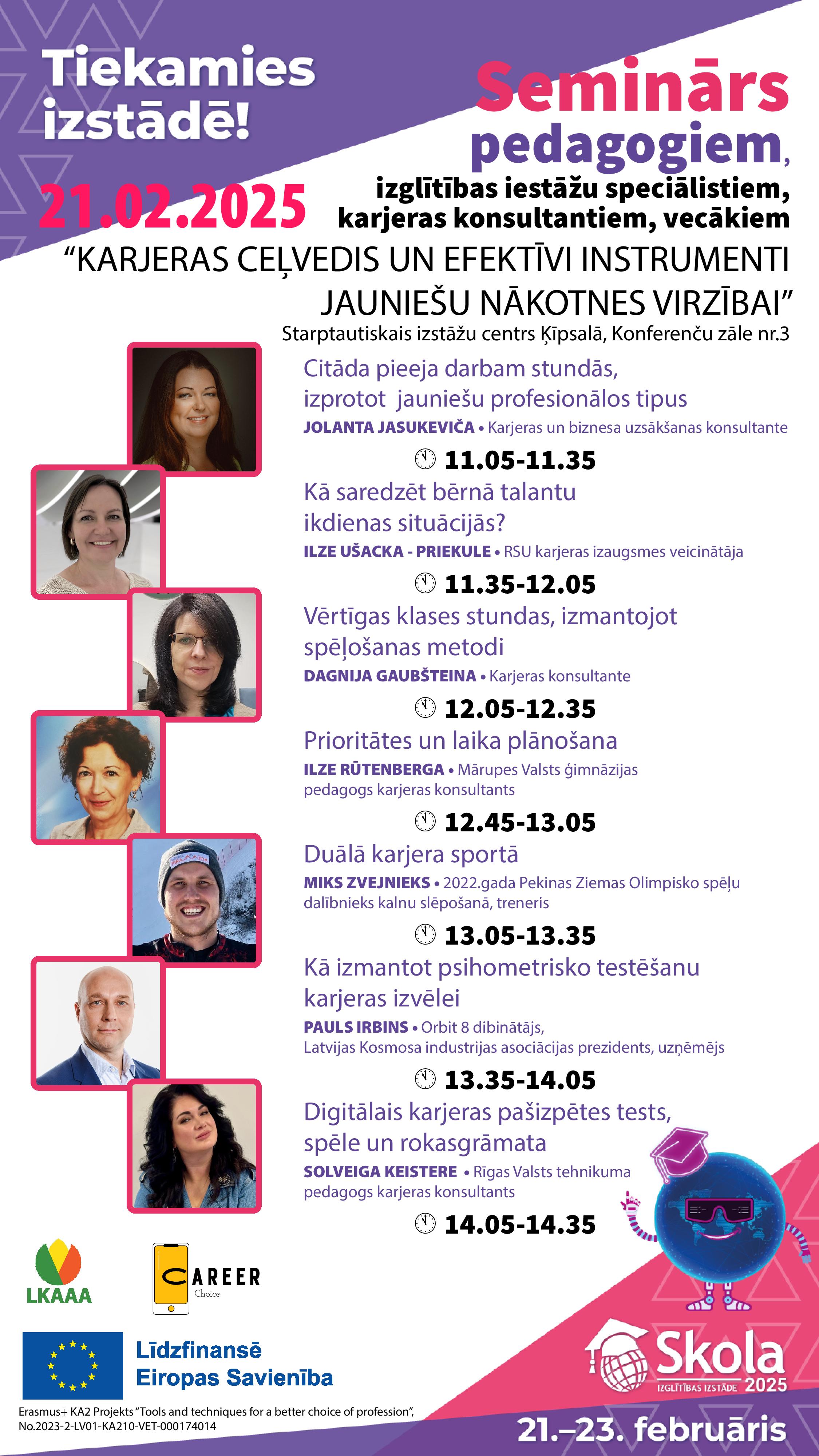 - Metodes, kas palīdzēs skolēniem atklāt savas spējas, izprast profesiju pasauli un veidot ilgtermiņa plānus.
